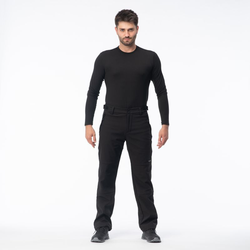 Klíčové vlastnosti: Softshellové kalhoty s membránou: nepromokavost 10 000 mm H2O, prodyšnost 1000 g/m²/24h DWR zátěr Strečová podšívka Microfleece Dvě kapsy na zip Zadní kapsa Reflexní prvky Nastavitelný pas Technické specifikace: Složení materiálu: 94 % polyester, 6 % elastan