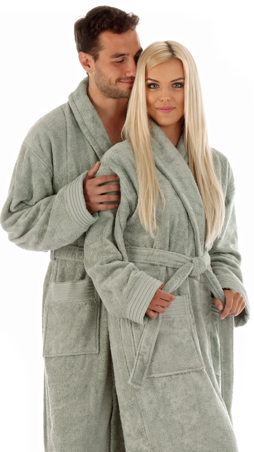 Luxusní župan Austin z bambusové viskózy se šálovým límcem a elegantními bordurami na rukávech a kapsách.