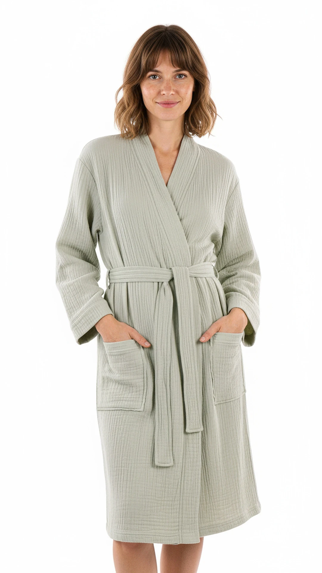 - pohodlný unisex kimono střih v praktické délce 110cm je zároveň elegantní a praktický. Léga dostatečně uzavírá výstřih, dvě prostorné kapsy využijete nejen pro uložení klíčů při návštěvě sauny nebo wellness.
