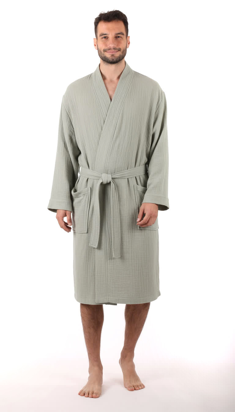 - pohodlný unisex kimono střih v praktické délce 110cm je zároveň elegantní a praktický. Léga dostatečně uzavírá výstřih, dvě prostorné kapsy využijete nejen pro uložení klíčů při návštěvě sauny nebo wellness.