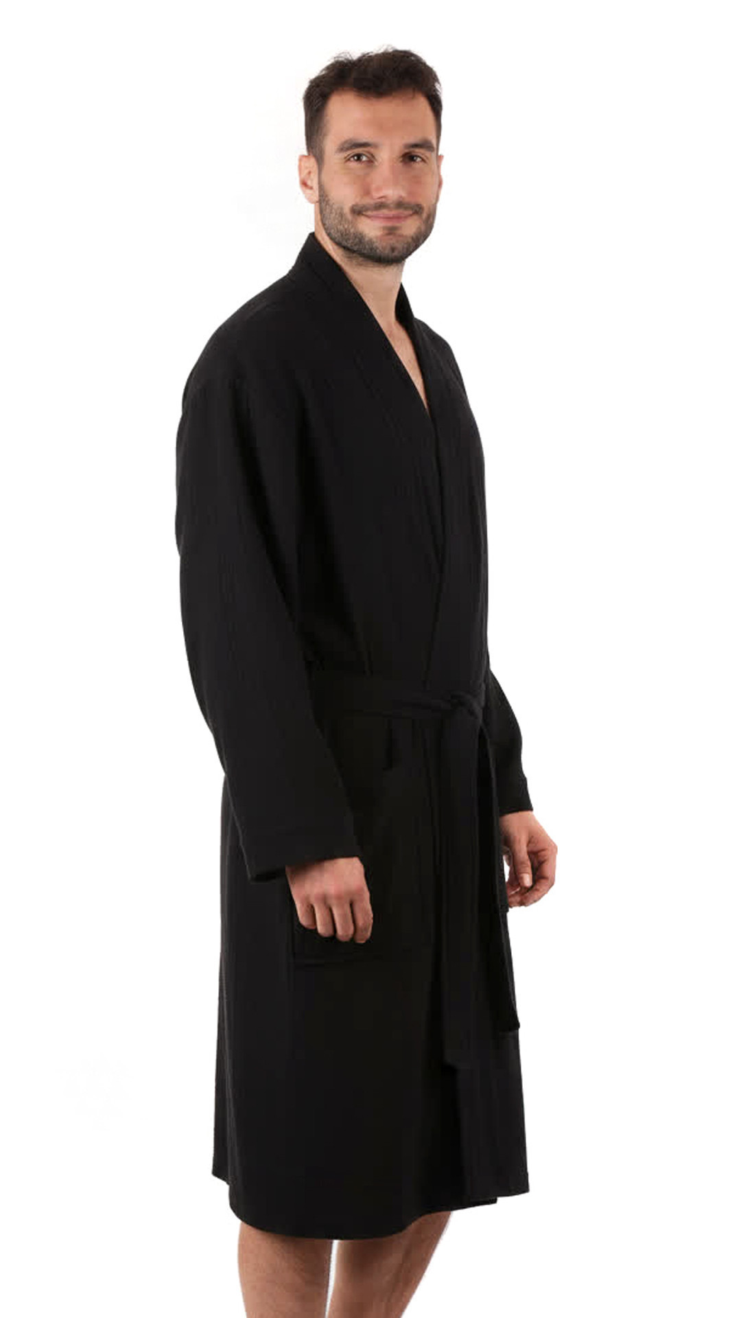 - pohodlný unisex kimono střih v praktické délce 110cm je zároveň elegantní a praktický. Léga dostatečně uzavírá výstřih, dvě prostorné kapsy využijete nejen pro uložení klíčů při návštěvě sauny nebo wellness.