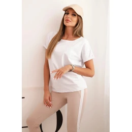 Tento dámský bavlněný komplet s tričkem a legínami s lampasem je ideální volbou pro ženy, které ocení pohodlí spojené s energickým, moderním stylem. Tričko má volný, pohodlný střih, který skvěle sedí na postavě, a legíny s kontrastním pruhom opticky prodlužují nohy a dodávají sportovní charakter.
