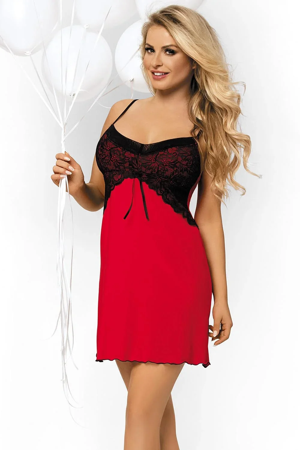 Noční prádlo od Dkaren. Tatiana model. Výrobek je vyroben z 92 % z viskózy a 8 % z elastanu. Výrobek pro ženy. Výhody produktu: viskózové pohodlné červené s krajkou. Výrobek má nastavitelné ramenní popruhy.