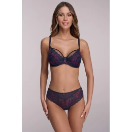 Biustonosz marki Ava. Model 2183 Sensation. Posiada druty, które podpierają piersi odpowiednio je kształtując. Produkt posiada regulowane ramiączka bez możliwości ich odpięcia. Haczyki do ramiączek metalowe. Biustonosz zapinany na haftki. Miejsce zapięcia: tył. Produkt został wykonany z 88% poliamid, 8% bawełna, 4% elastan. Produkt damski.