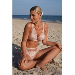Biustonosz marki Azal. Model Skarlet. Posiada druty, które podpierają piersi odpowiednio je kształtując. Produkt posiada regulowane ramiączka bez możliwości ich odpięcia. Haczyki do ramiączek metalowe. Biustonosz zapinany na haftki. Miejsce zapięcia: tył. Produkt został wykonany z 88% poliamid, 8% bawełna, 4% elastan. Produkt damski.