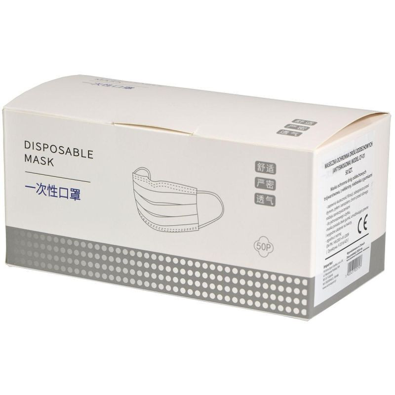 Maska ochronna dróg oddechowych trójwarstwowa, z włókniny, niebieska z gumkami
