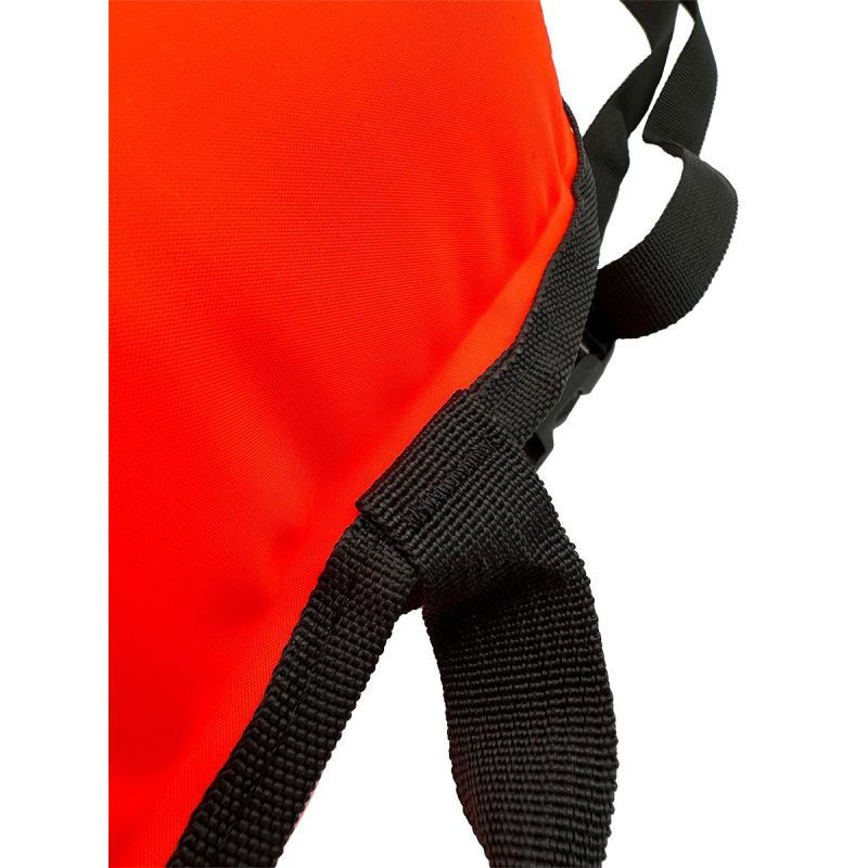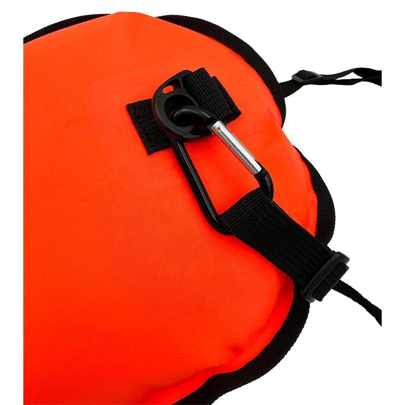 Bojka posiada regulowaną i wytrzymałą linkę do mocowana na pasie, dzięki czemu każdy będzie mieć pewność, że bojka będzie blisko podczas pływania.