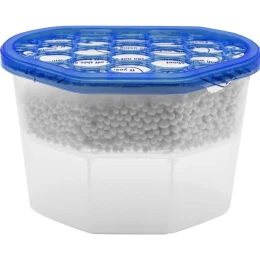 Posiada 230 g specjalnych granulek pochłaniających wilgoć z otoczenia, co wystarcza na powierzchnię ok.10-20 m2. Działa natychmiast, jest bezwonny i nie wymaga żadnego dodatkowego źródła zasilania.