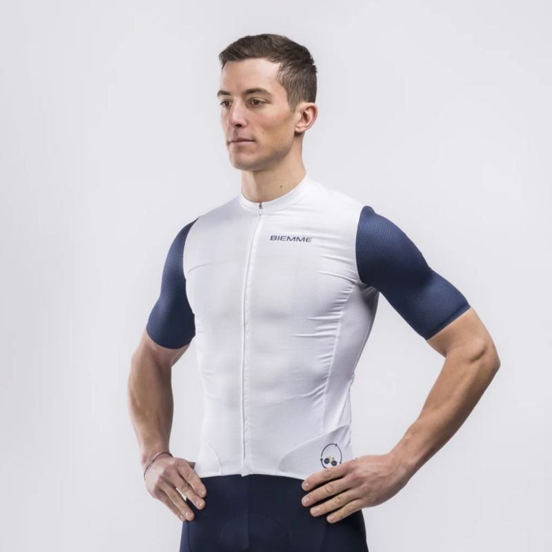 model 21851025 Tričko bílé tmavě modré S - Biemme