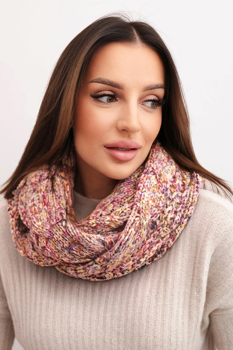 Stylový dámský šál v teplých odstínech melíru, ideální na zimní dny. Vyroben z měkké, silné příze s vazbou, která zajišťuje vynikající izolaci před chladem. Šál nejen účinně chrání krk, ale také tvoří módní prvek zimních stylizací.