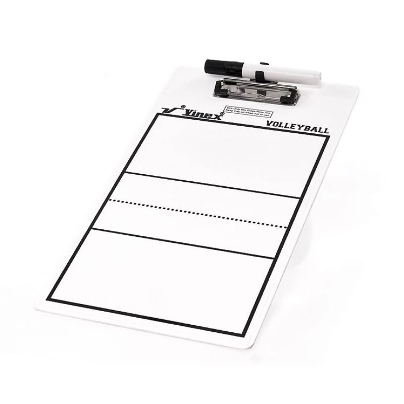 SMJ VCCBE-V916 TAKTICKÁ TABULE Oboustranná taktická tabule pro volejbalové trenéry. vyrobena z 3 mm silného akrylu s praktickým klipem, snadno stíratelným povrchem, doplněna fixem. ideální pro znázornění pozic hráčů, plánování apod. rozměry: 23x40 cm
