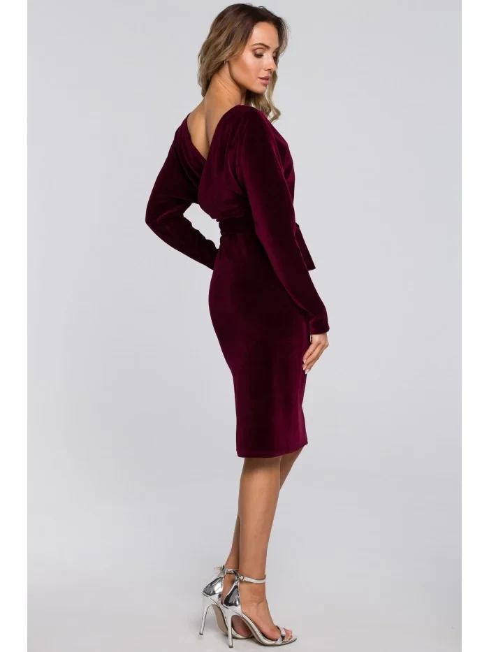 model 21874764 Sametové zavinovací šaty vínové - Moe