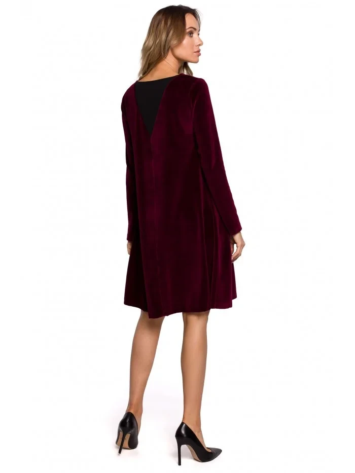 model 21874782 Sametové šaty volného střihu vínové - Moe