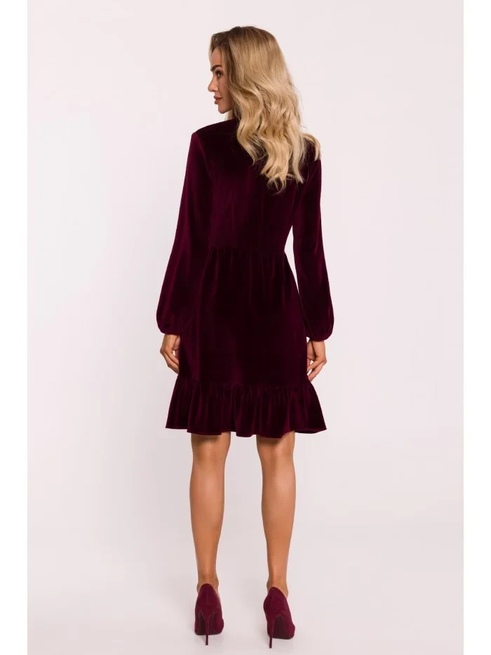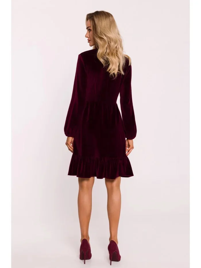 model 21874834 Sametové šaty s výstřihem do V bordó - Moe