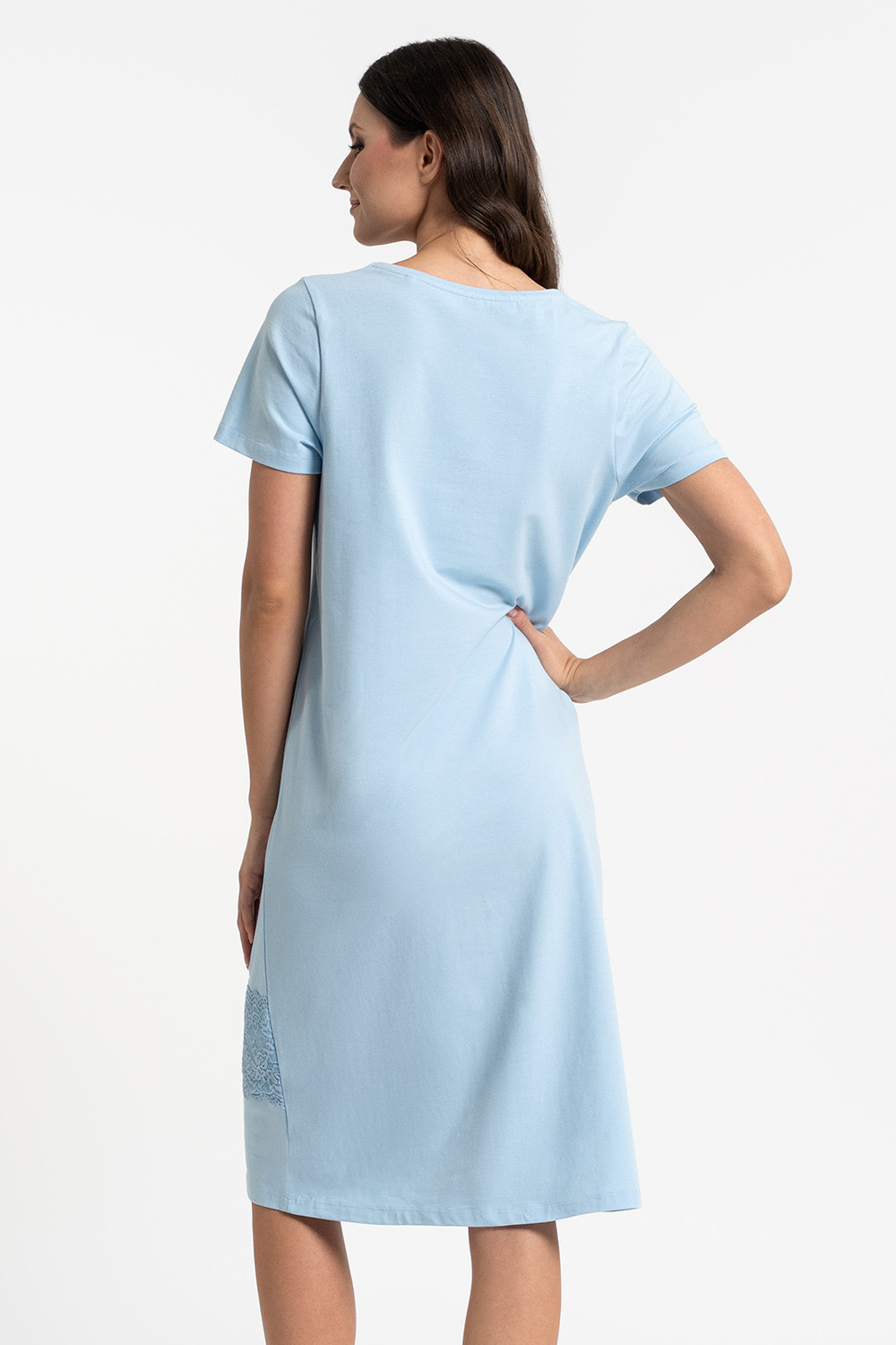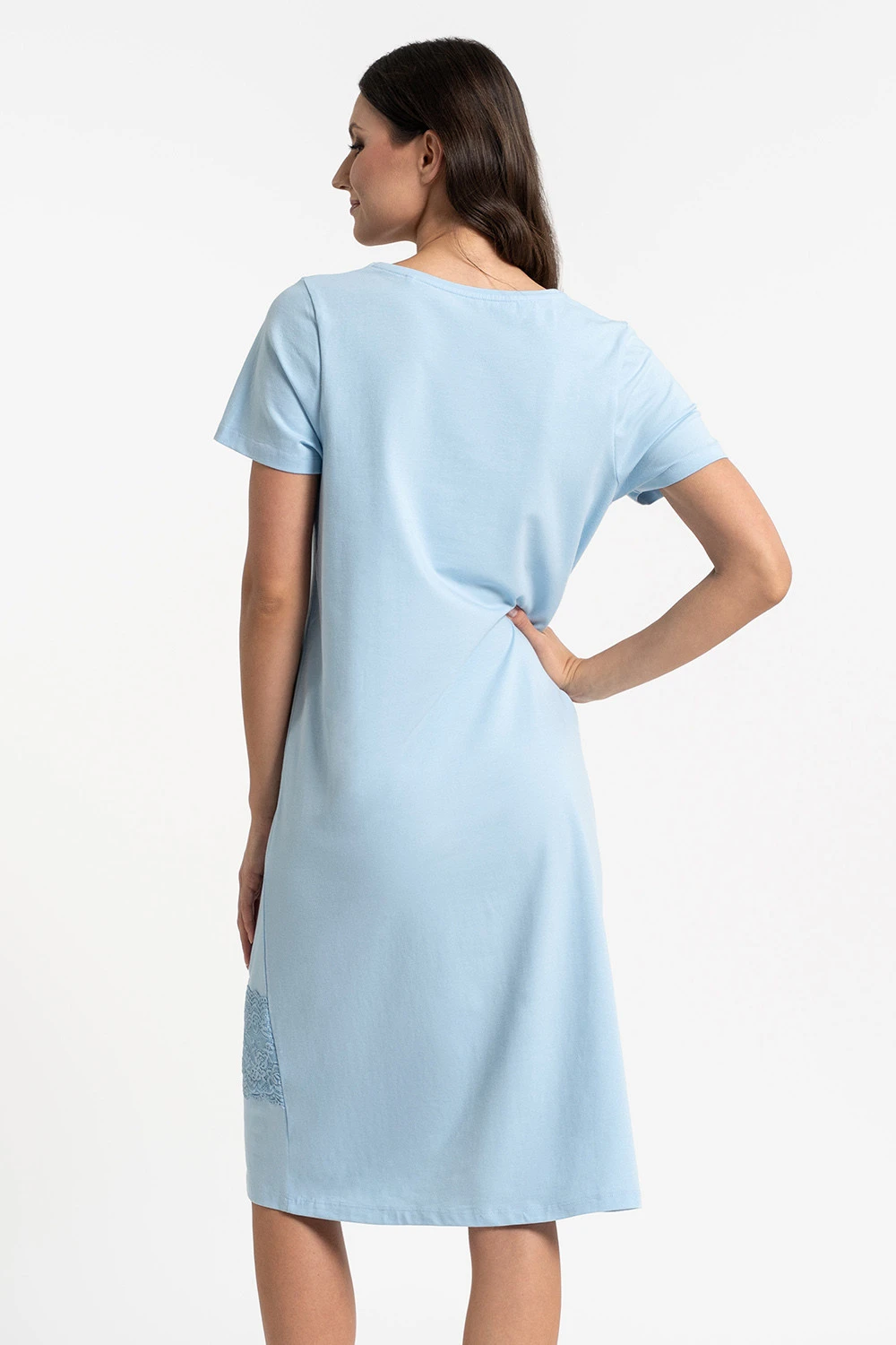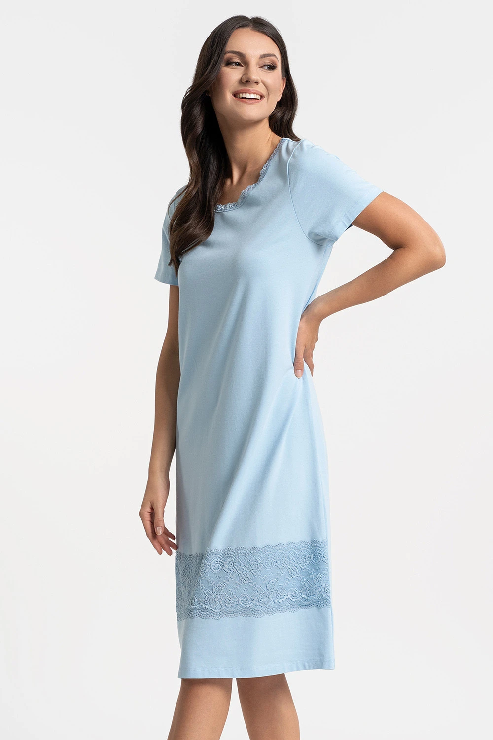 Damska koszula nocna Moraj PDK2600-013 wykonana z miękkiej dzianiny bawełnianej z dodatkiem elastanu, zapewnia komfort i swobodę ruchów. Klasyczny, okrągły dekolt i krótki rękaw sprawiają, że model jest uniwersalny przez cały rok. Prosty, nieopinający krój sprzyja wygodzie podczas snu i domowego relaksu. To praktyczna baza nocnej garderoby o ponadczasowym charakterze. Skład: 95% bawełna, 5% elastan.
