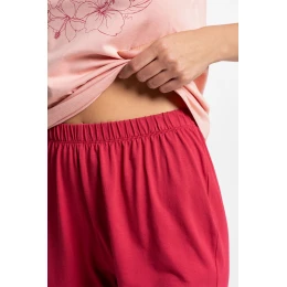 Piżama damska Moraj PDD3500-018 to klasyczny komplet: koszulka z krótkim rękawem i okrągłym dekoltem oraz spodnie o długości 3/4. Miękka bawełna z dodatkiem elastanu zapewnia wygodę i swobodę ruchu. Prosty, codzienny krój i gładkie wykończenia sprawdzą się w codziennym użytkowaniu. Idealna do snu i domowego relaksu. Skład: 95% bawełna, 5% elastan.
