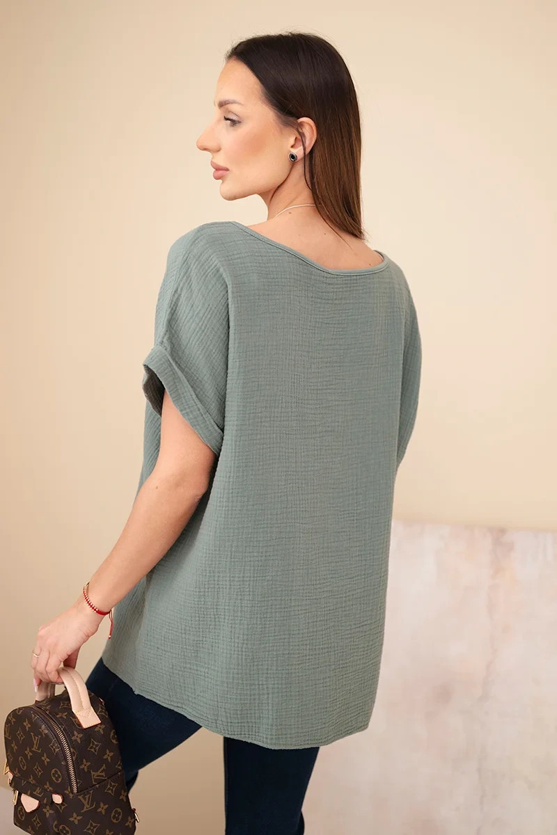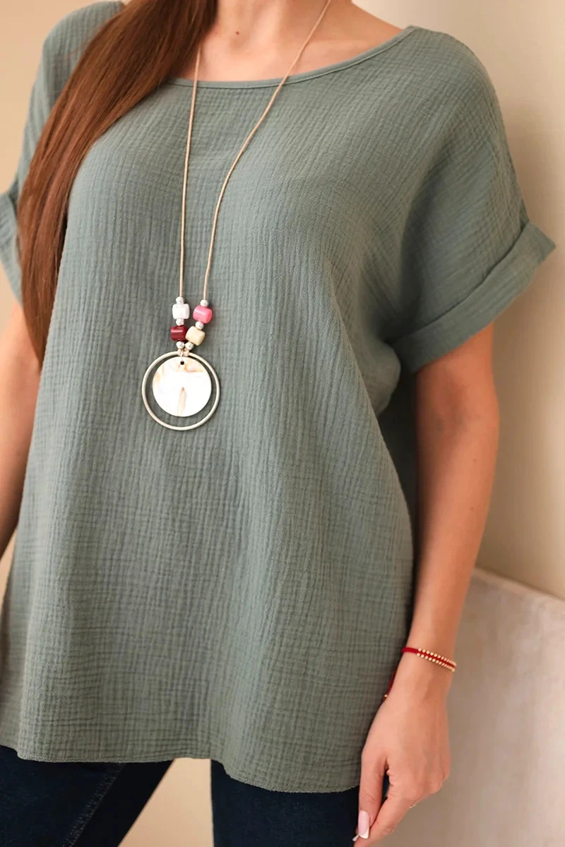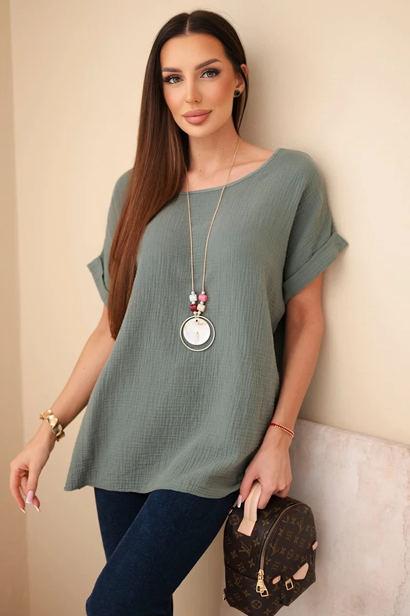model 21961265 blůza s náhrdelníkem tmavě khaki - K-Fashion