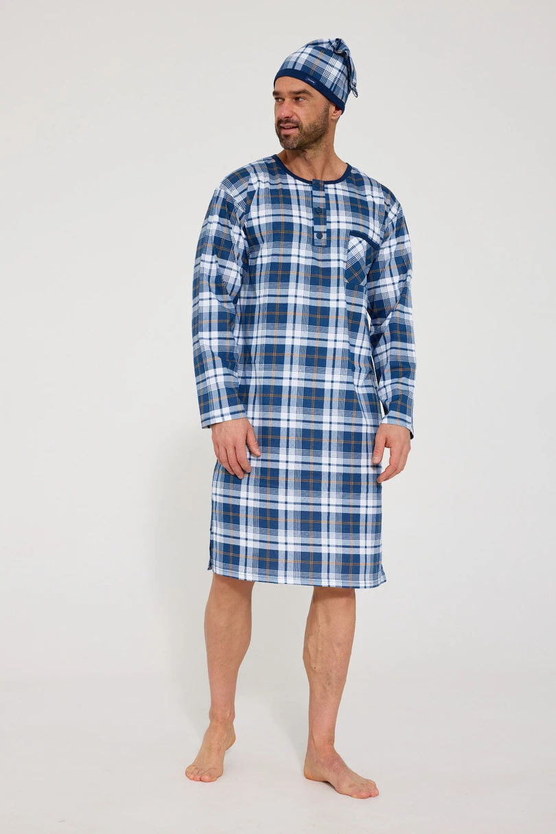 Pánská noční košile Cornette DR 110 W/26 je klasickou a pohodlnou nabídkou pro muže, kteří si cení pohodlí a nadčasového stylu. Model s dlouhými rukávy byl ušit z mimořádně měkké, vysoce kvalitní bavlny, která je příjemná k pokožce, prodyšná a zajišťuje pohodlný spánek po celý rok.