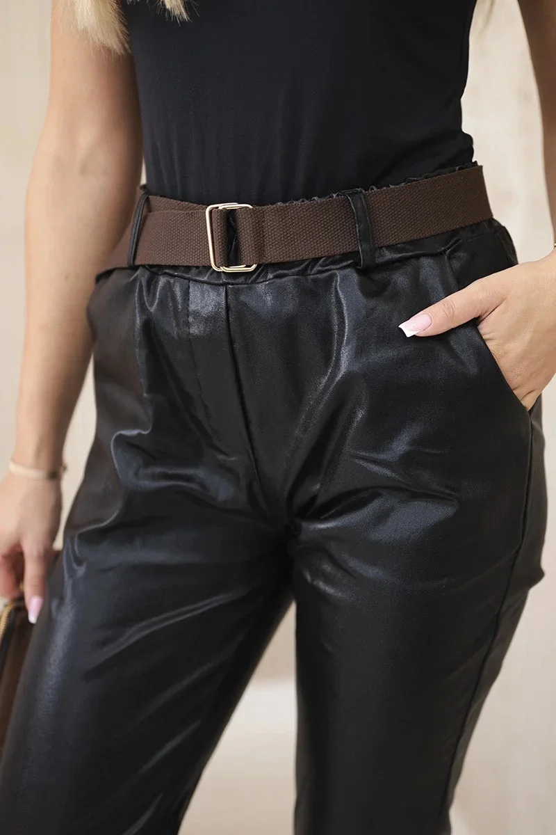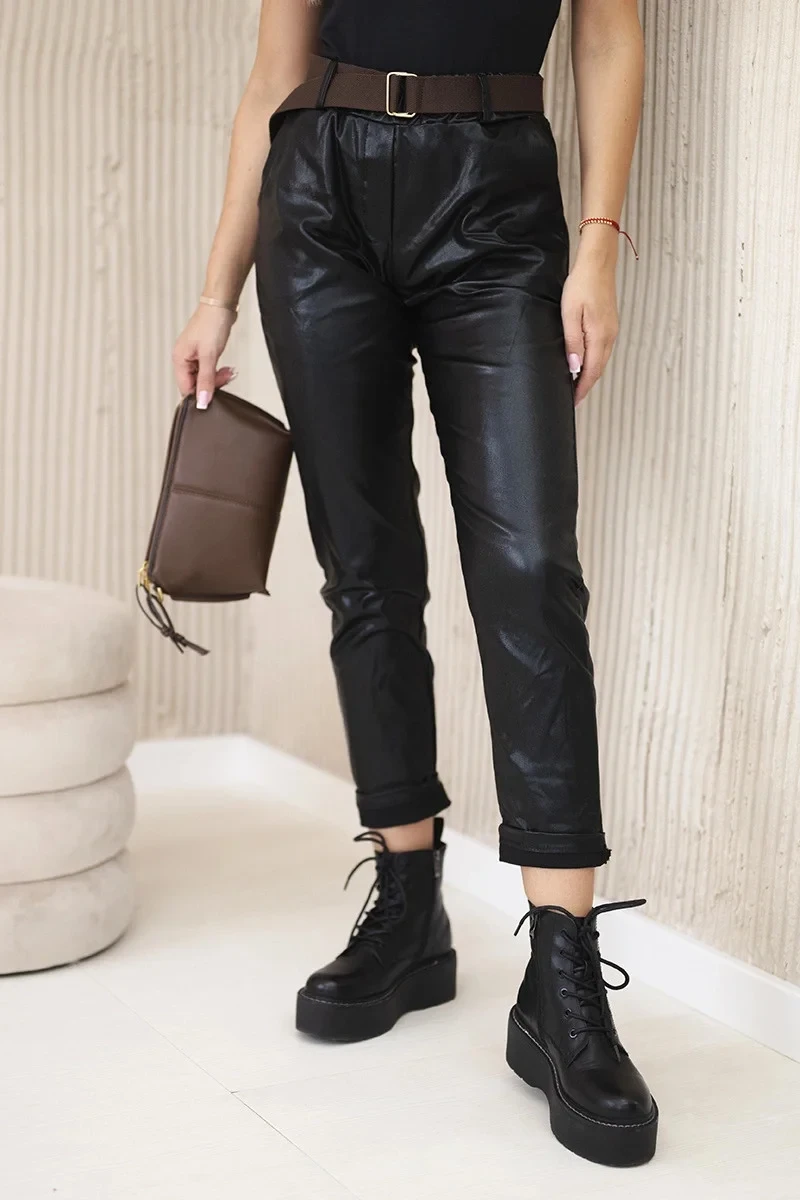 model 22014125 kalhoty s páskem lesklá černá - K-Fashion