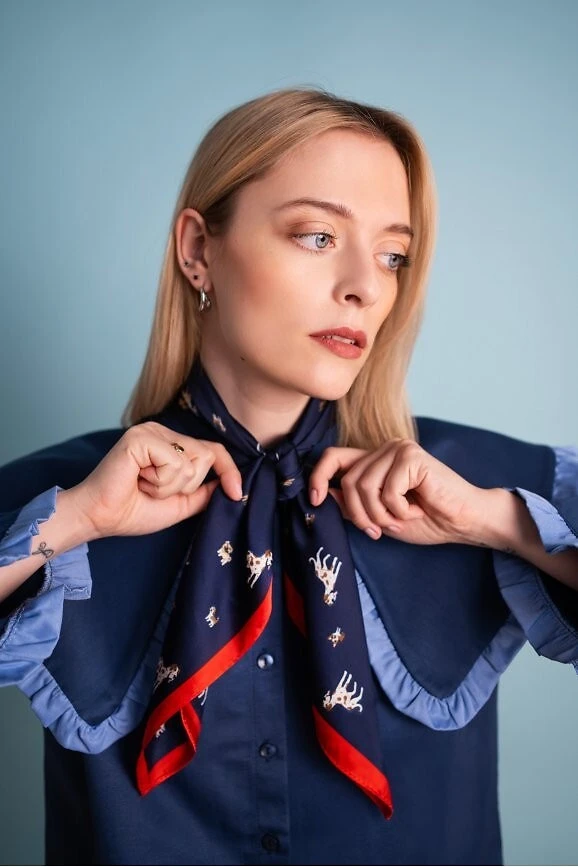 - można ją nosić na głowie, pod szyją, przy torebce, a nawet przewiązaną w pasie