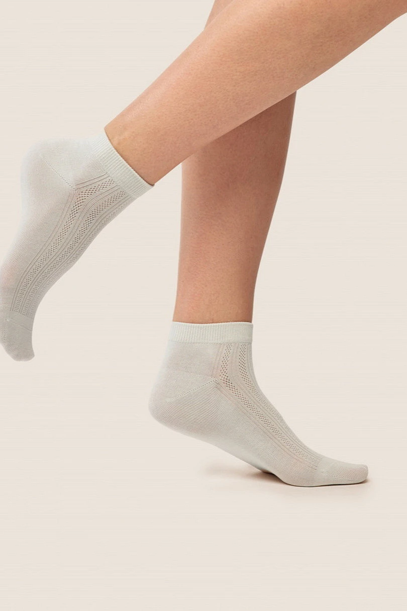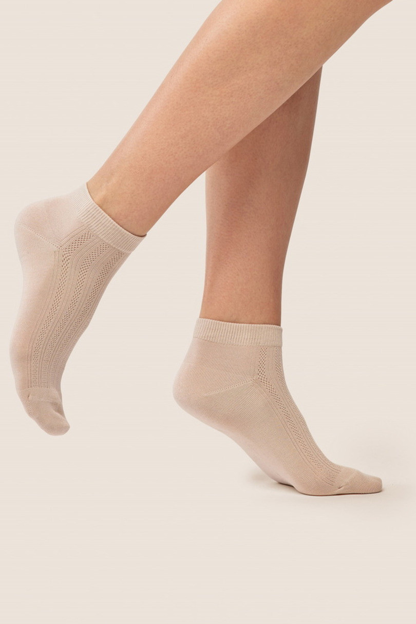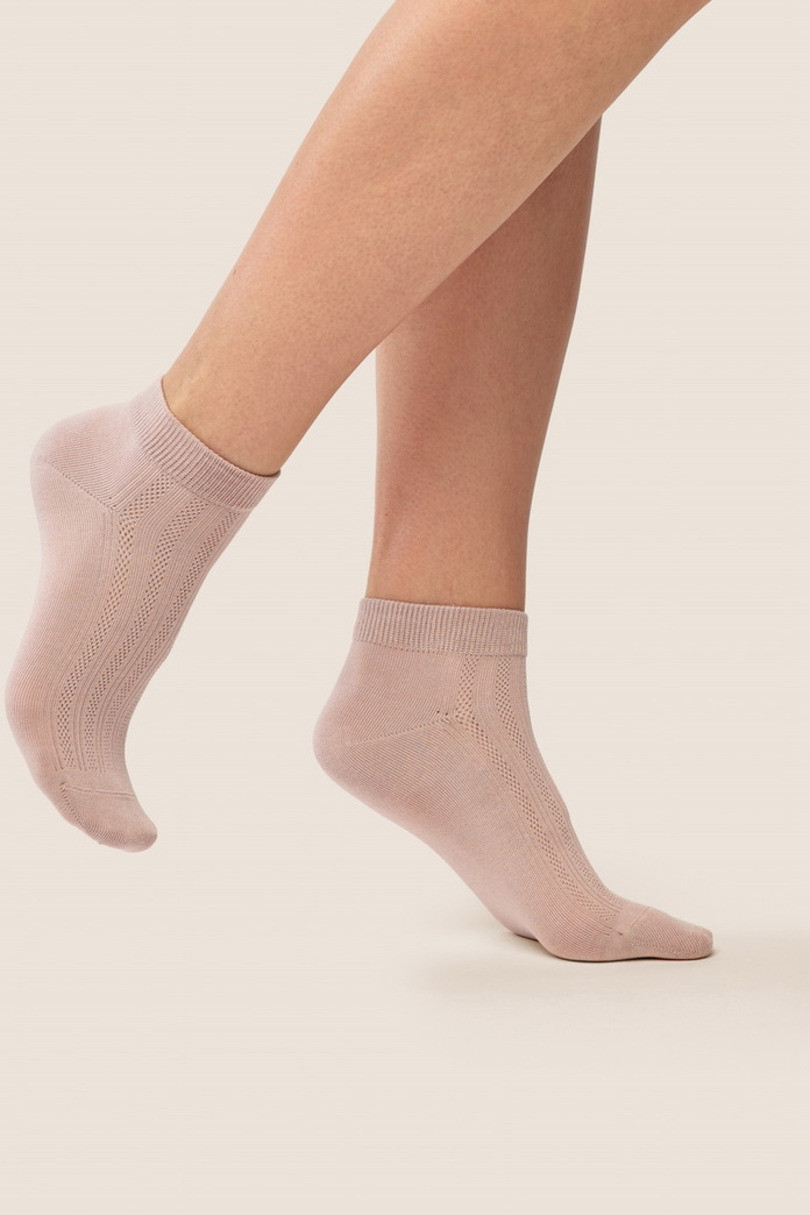 Bavlněné ponožky Gabriella SW/087 jsou stylovou nabídkou pro ženy, které ocení kombinaci pohodlí a decentního designu. Jsou vyrobeny z vysoce kvalitní bavlny, zajišťují dokonalou prodyšnost a pohodlí při celodenním nošení. Jemný, prolamovaný vzor jim dodává lehkost a eleganci, takže se skvěle hodí jak ke každodenním, tak k ženštějším stylizacím. Elastický lem zaručuje dokonalé přizpůsobení bez otlaků a příměs elastanu a polyamidu zvyšuje trvanlivost a odolnost proti deformaci.