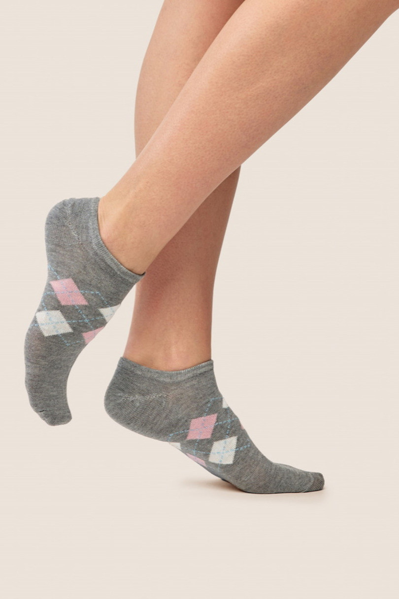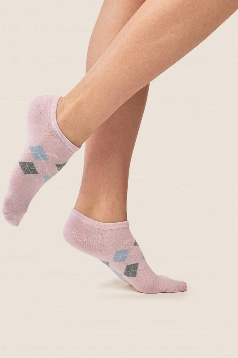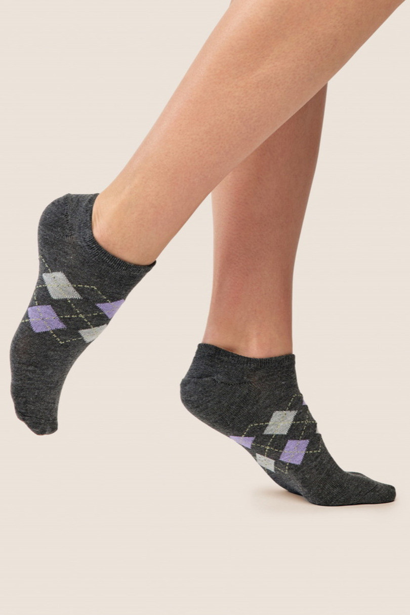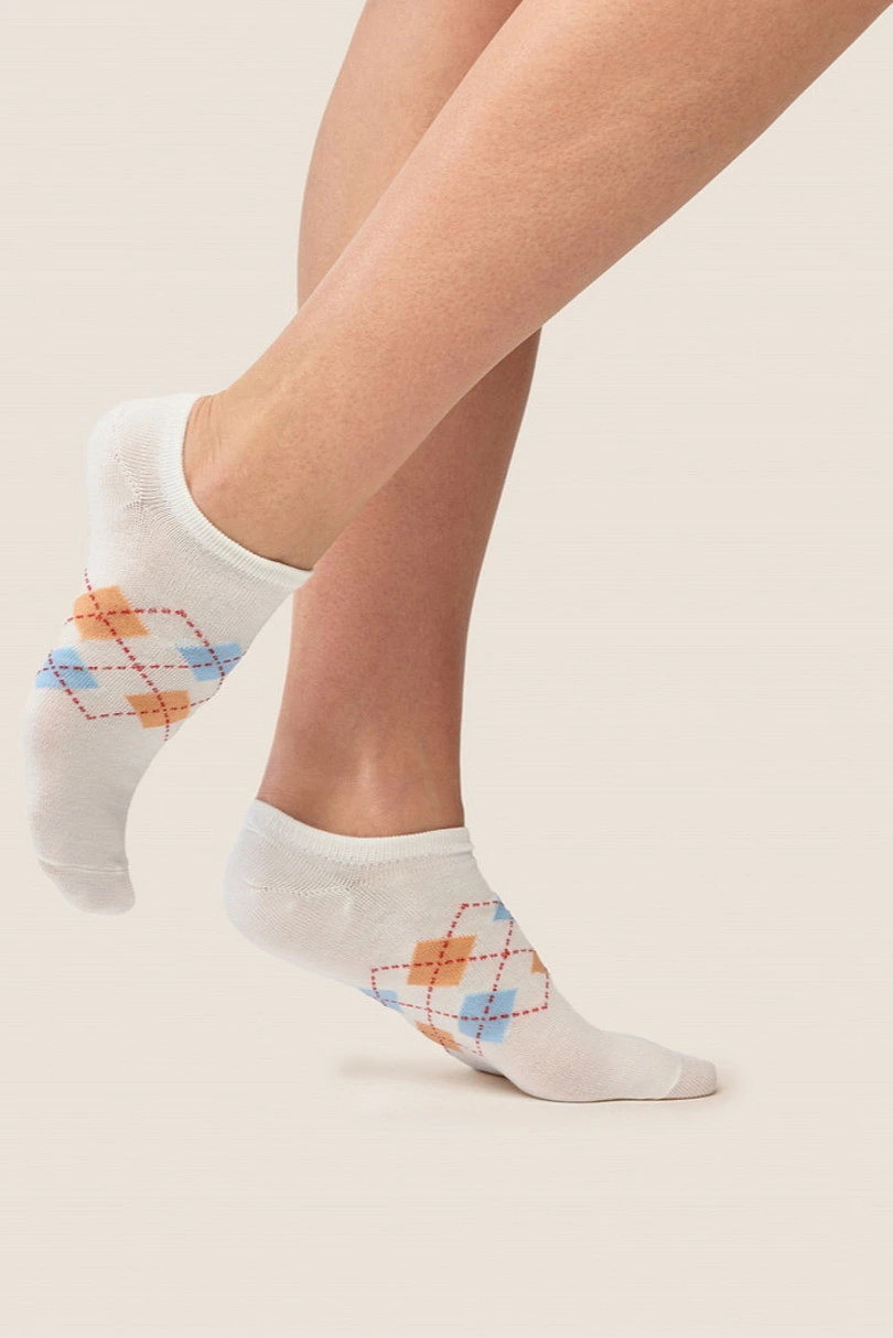 Bavlněné ponožky Gabriella SW/095 jsou stylovou a pohodlnou nabídkou pro ženy, které ocení klasické vzory v moderním vydání. Jsou vyrobeny z vysoce kvalitní bavlny (90 %), která zajišťuje dokonalou prodyšnost, měkkost a pohodlí při celodenním nošení. Módní geometrický vzor v kosočtvercích jim dodává nadčasový charakter a činí z nich dokonalý doplněk pro každodenní i volnočasové stylizace. Nízký střih je činí nenápadnými v obuvi a elastická úprava zaručuje dokonalé přizpůsobení bez otlaků. Přídavek polyamidu a elastanu zvyšuje životnost a odolnost proti deformacím.