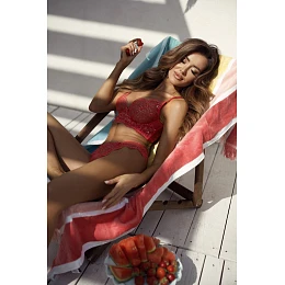 Pohodlná dlouhá podprsenka vyrobená z krásné třpytivé krajky v elegantním korálovém odstínu. Dlouhý design má měkké košíčky, které se jemně přizpůsobí tělu a zajistí celodenní pohodlí. Zadní část je vyrobena z jemného tylu, který je lehký a prodyšný, zatímco pětiřadé zapínání na háčky a očka umožňuje dokonalé přizpůsobení. Stylové zlaté detaily dodávají rafinovanost a ženský šarm.