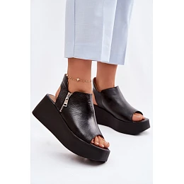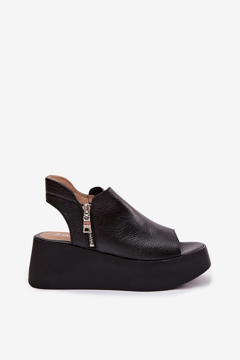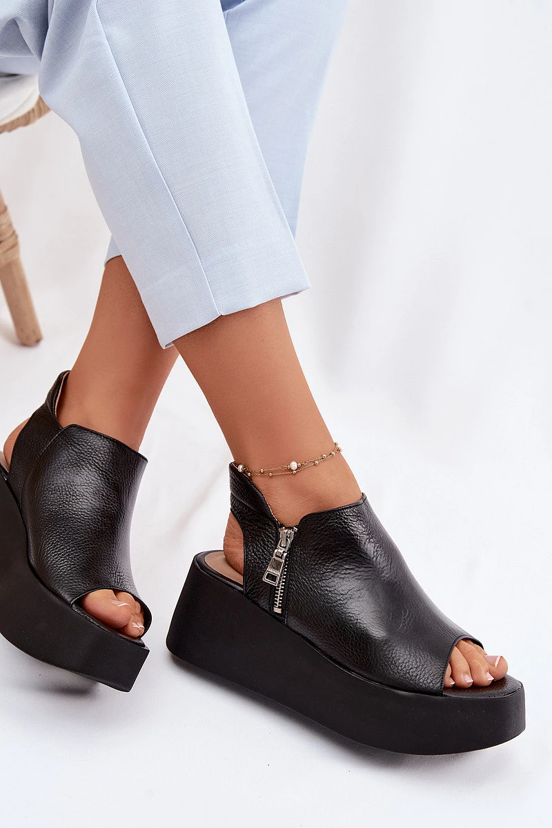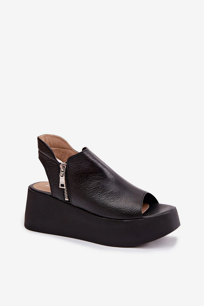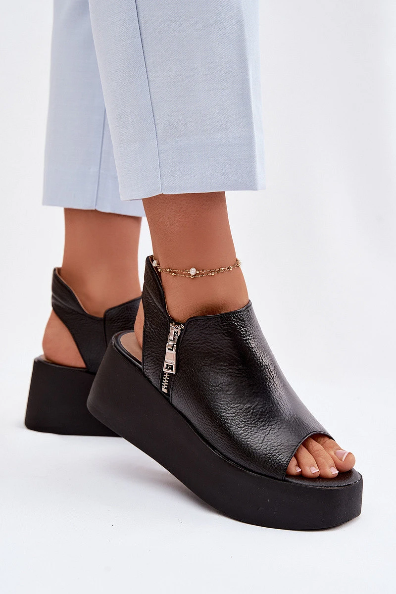 model 22100618 Kožené sandály na platformě Černé - Zazoo