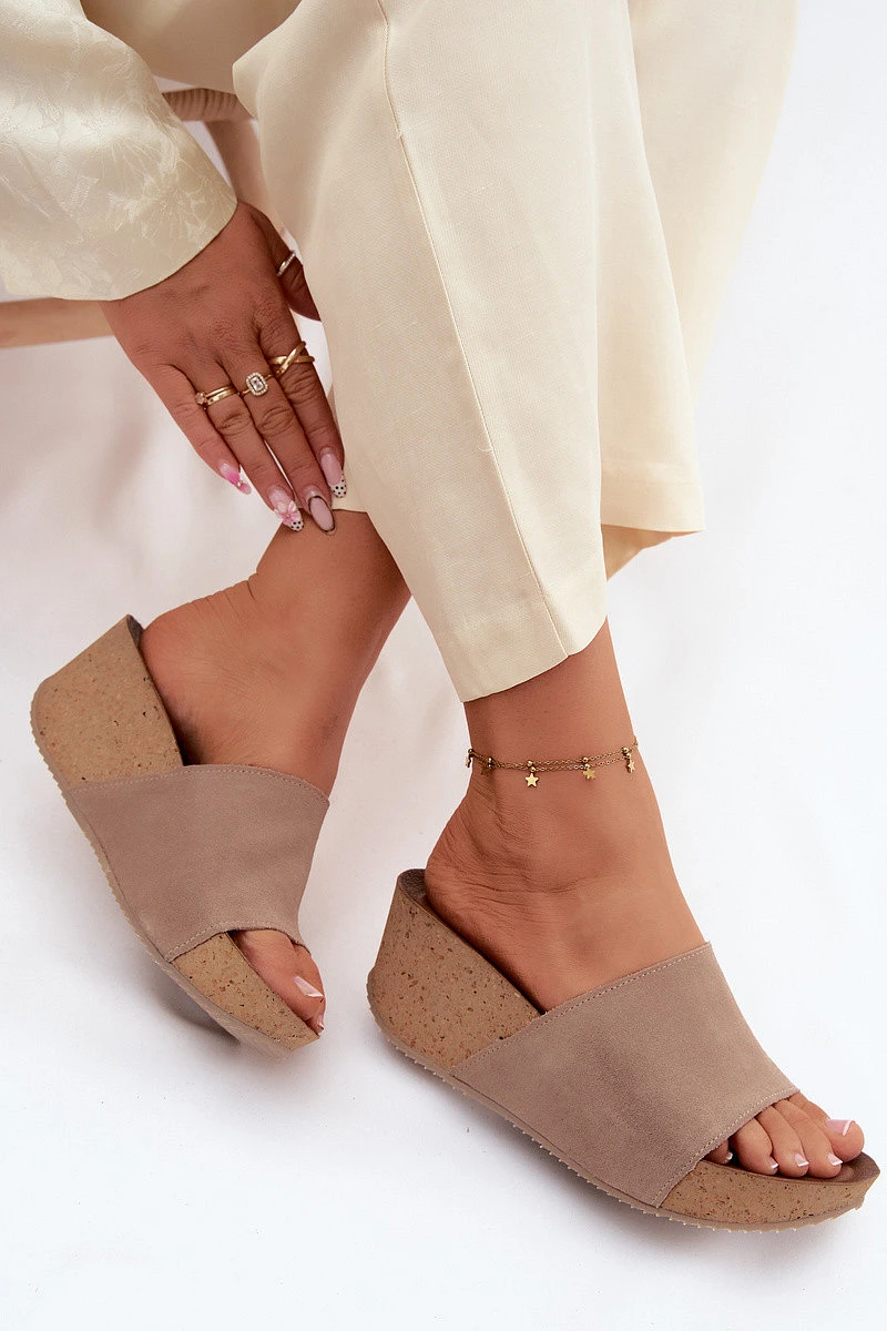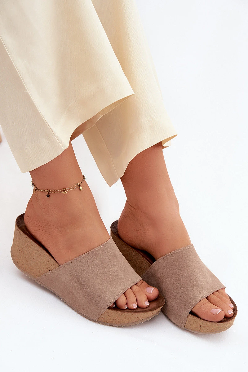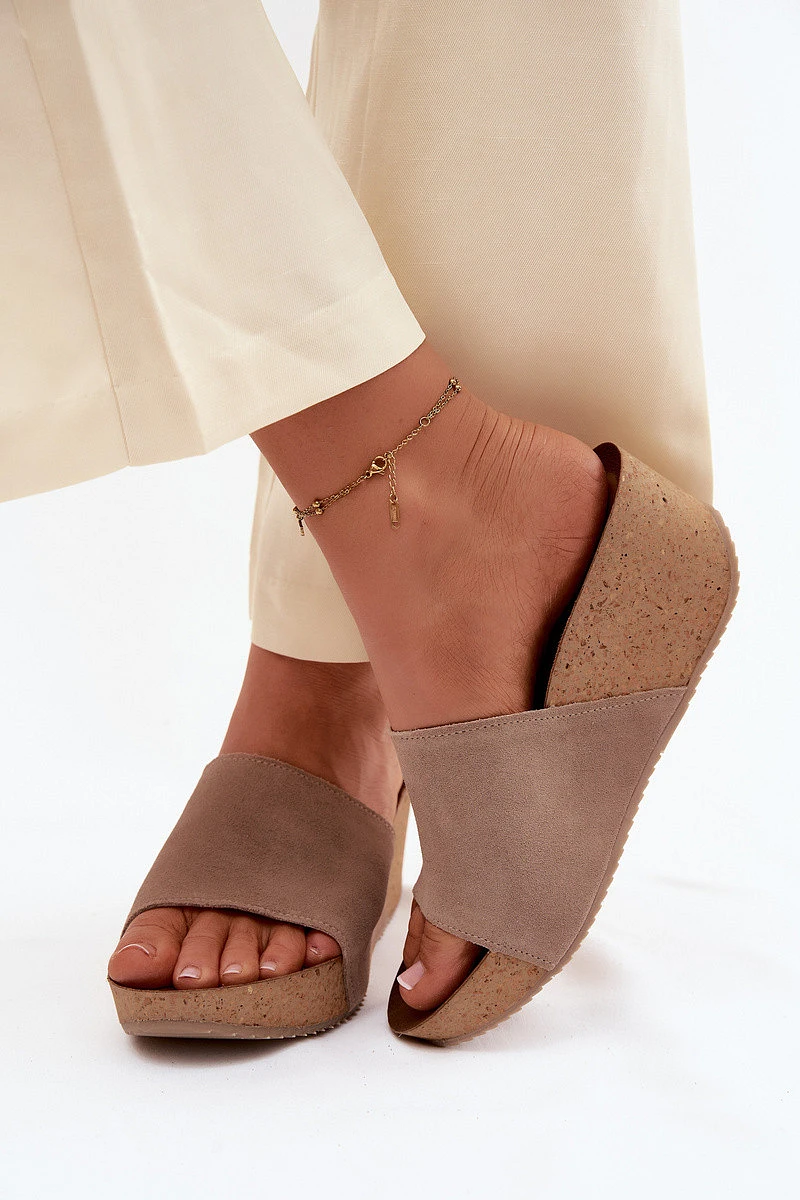 model 22125915 semišové dámské pantofle na korkové platformě tmavě béžové - Zazoo