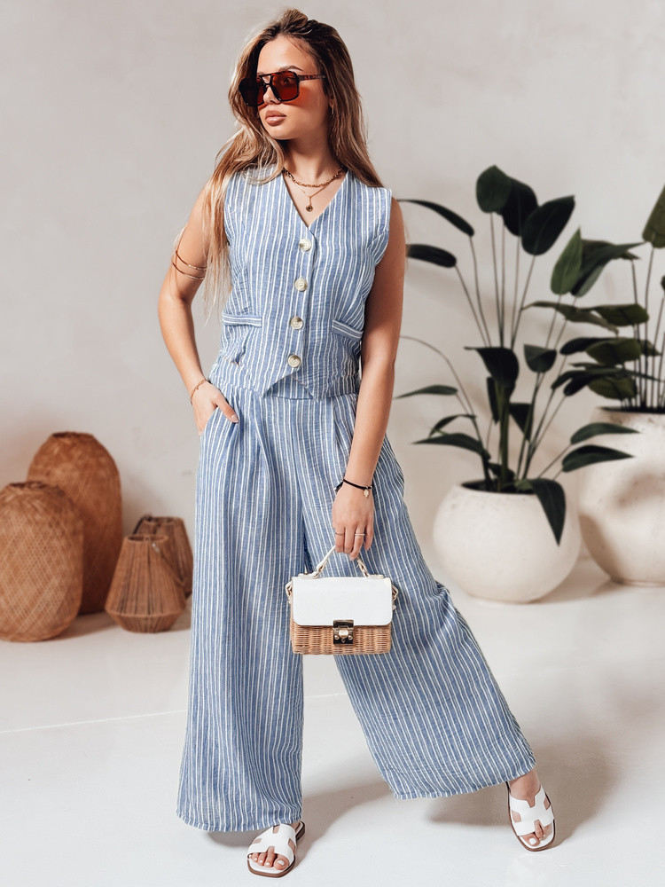 MODERESS dámské pruhované kalhoty s širokými nohavicemi modré FashionStreet UY2696