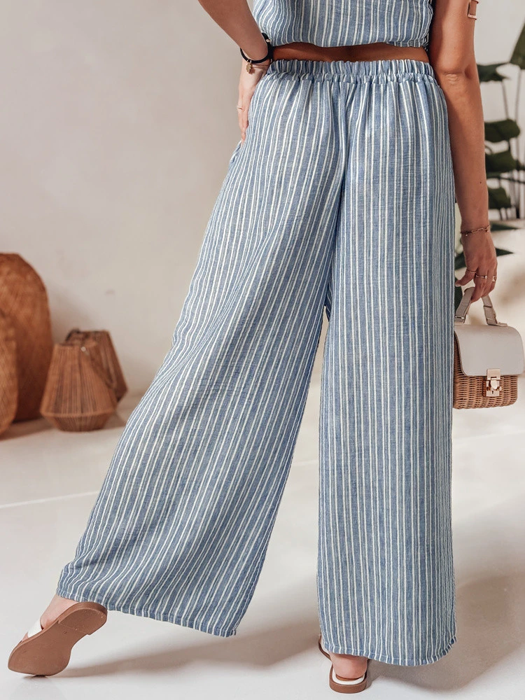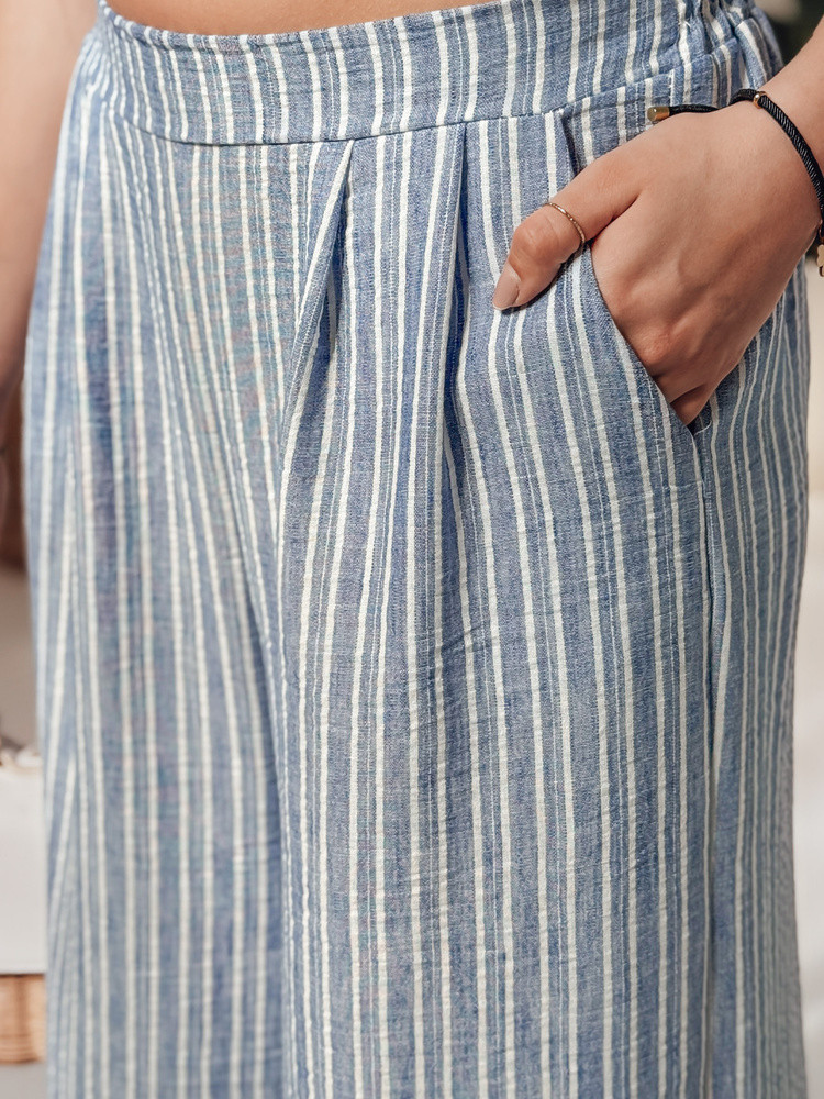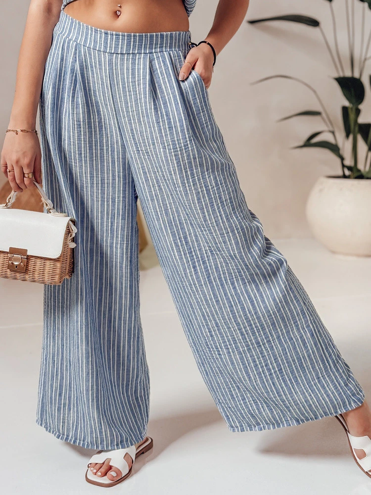 Dámské pruhované kalhoty s širokými nohavicemi MODERESS