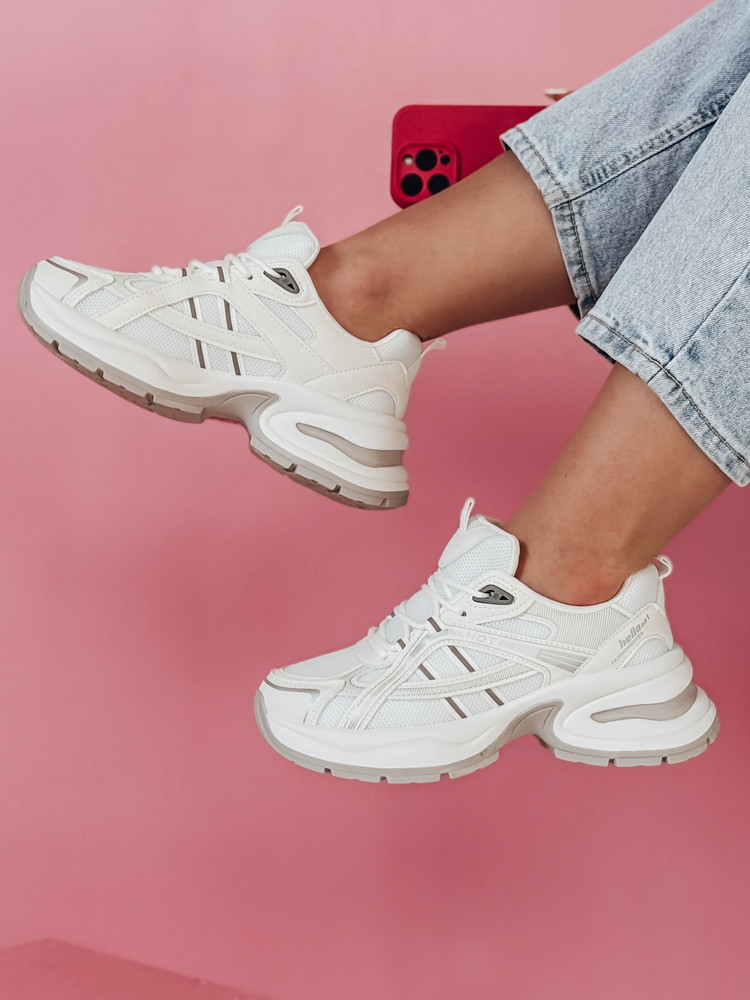 Dámské tenisky na pevné podrážce, kombinující ekokůži se vzdušným materiálem. Klasické šněrování zajišťuje pohodlné nošení, zatímco stylové zdobení jim dodává moderní nádech. Jsou ideální pro ležérní styling, kombinují pohodlí s módním designem a hodí se k džínům i sportovním šatům.