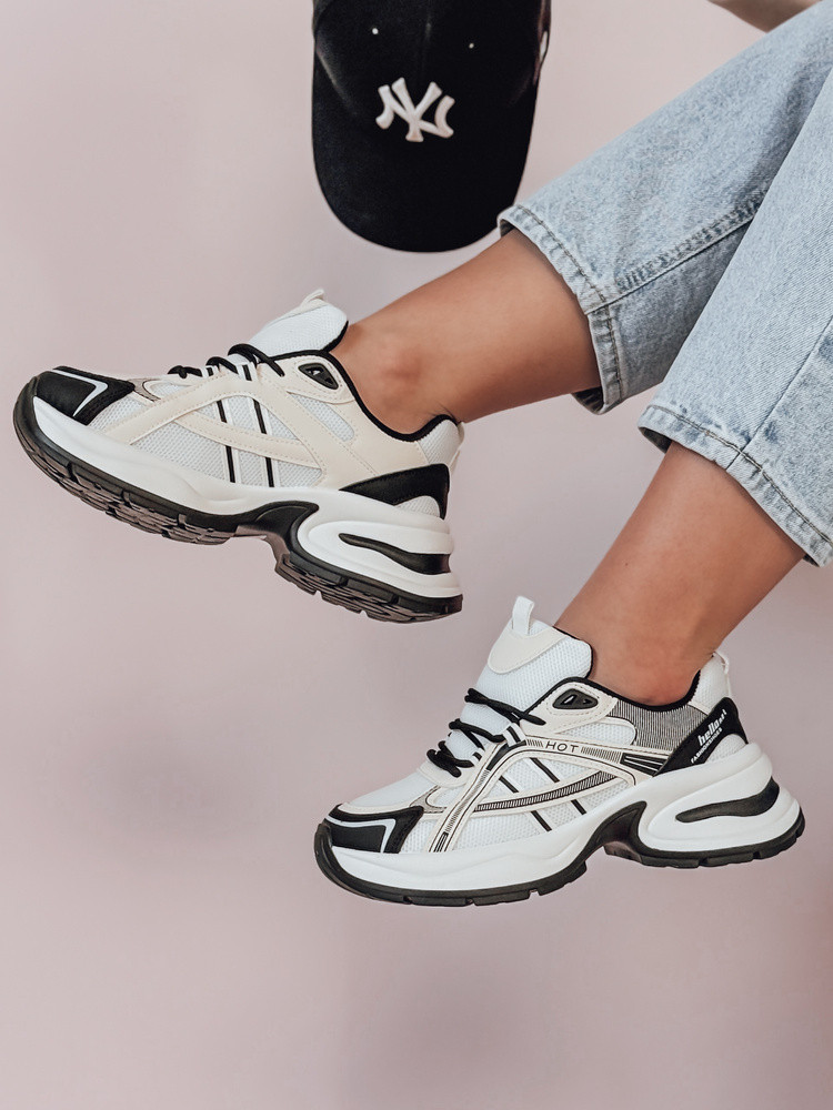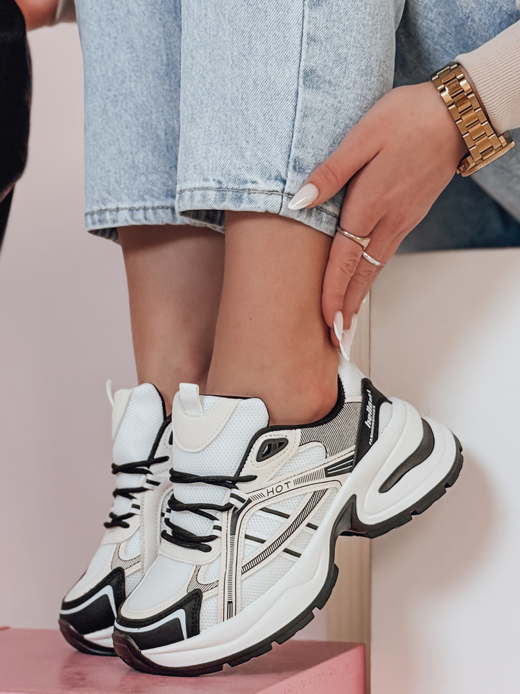 Sneakersy damskie na masywnej podeszwie, łączące ekoskórę z przewiewnym materiałem. Klasyczne sznurowanie zapewnia dopasowanie, a stylowe zdobienia nadają im nowoczesny charakter. Doskonałe do casualowych stylizacji, łączą wygodę z modnym designem, pasując zarówno do jeansów, jak i sportowych sukienek.