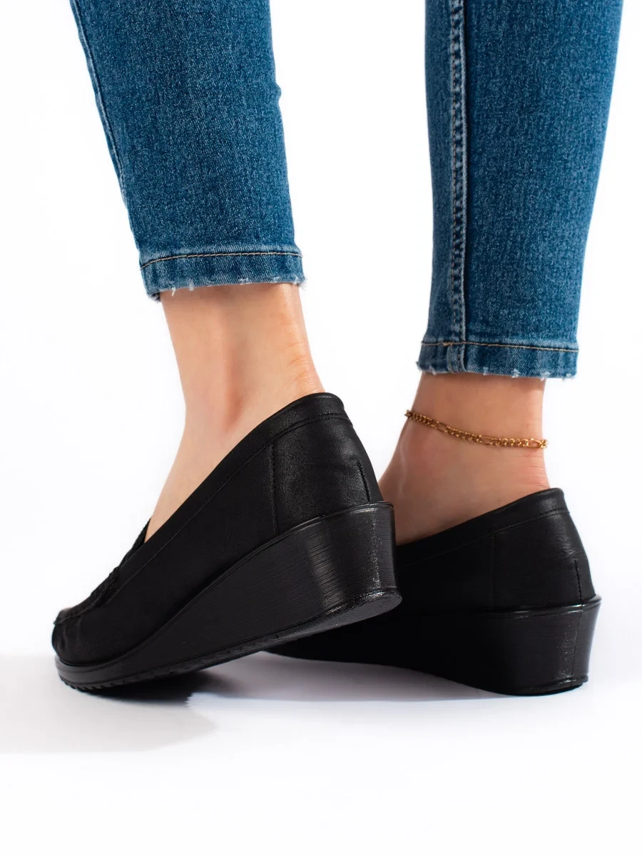 Moderní černé dámské mokasíny na klínku