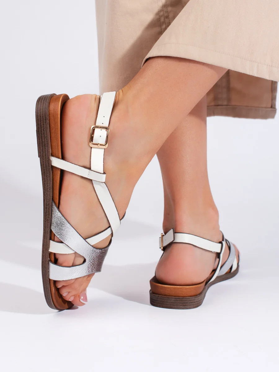 Moderní dámské bílé sandály na plochém podpatku