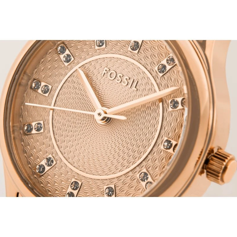 Odkryj jak segmentowana bransoleta zegarka w kolorze różowego złota może dodać czaru Twoim codziennym stylizacjom! Jej subtelna konstrukcja emanuje elegancją, wprowadzając finezję, która przyciąga spojrzenia. Wykonanie z wysokiej jakości stali nierdzewnej sprawia, że nie tylko zachwyca wyglądem, ale także zapewnia trwałość i komfort noszenia. Zmysłowy charakter tej bransolety sprawia, że doskonale układa się na kobiecym nadgarstku, delikatnie go oplatając i podkreślając jego kobiecość. Całość dopełnia subtelne logo FOSSIL na zapięciu bransolety, które stanowi ekskluzywny akcent.