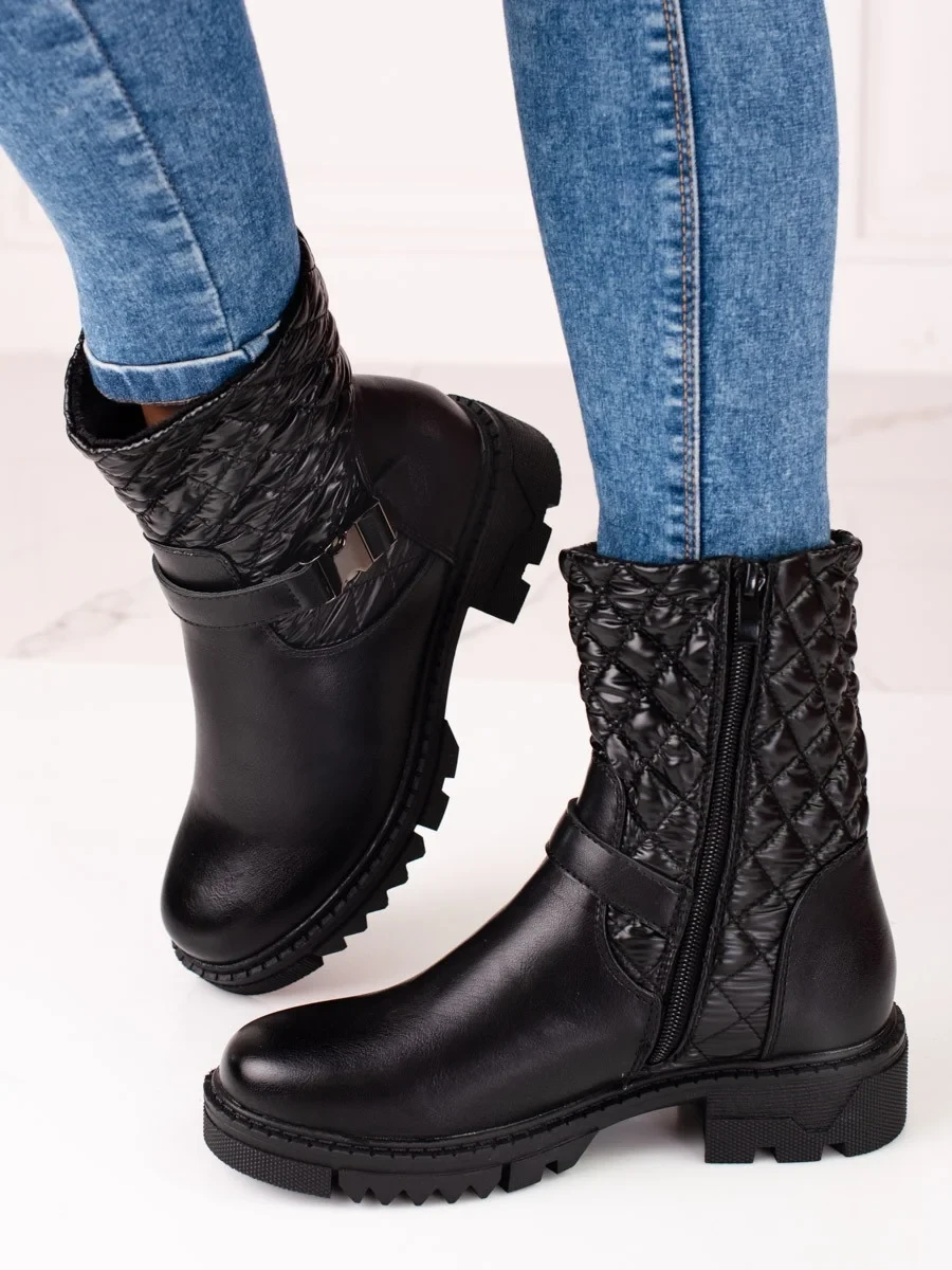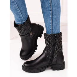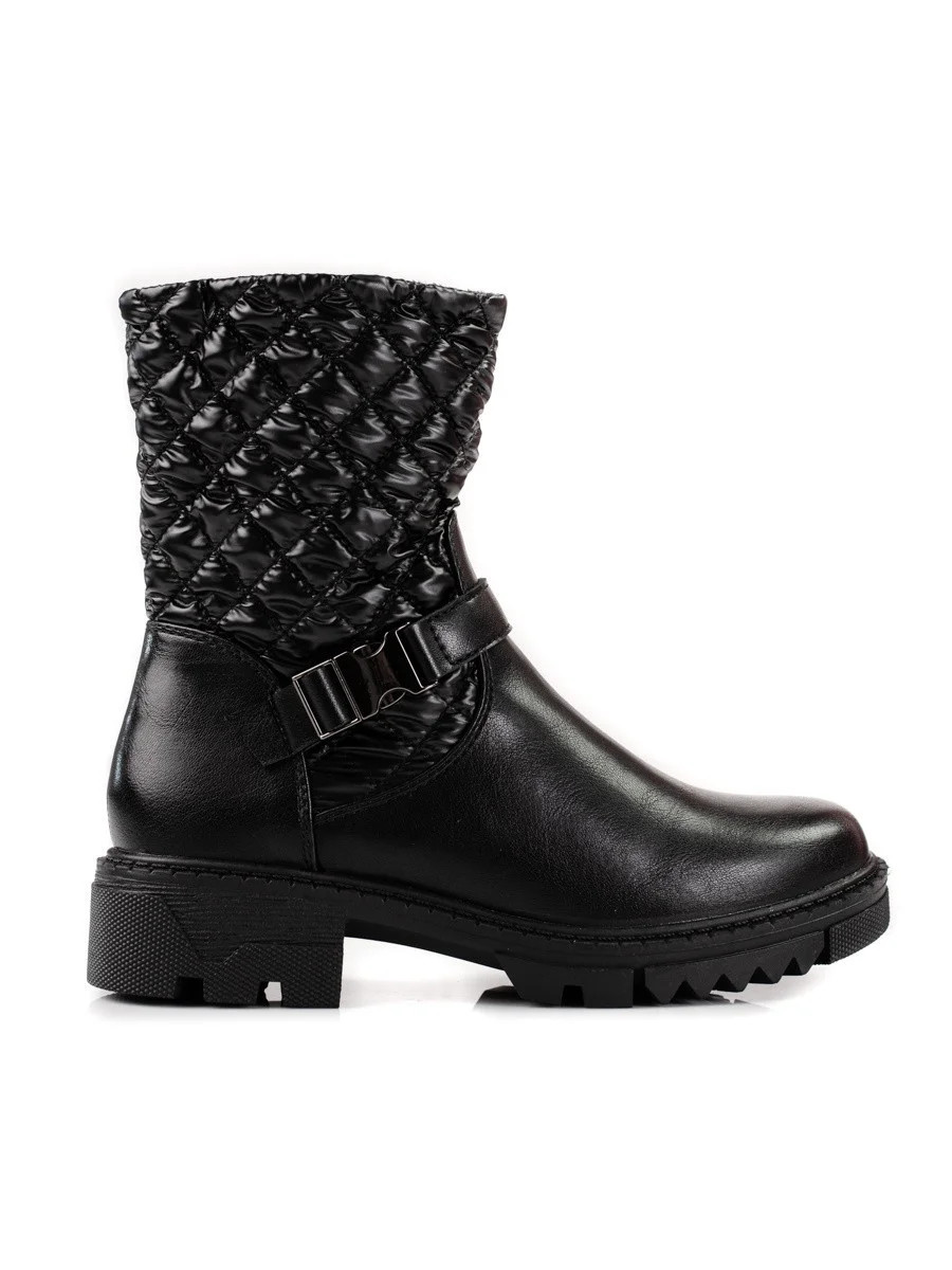 Moderní dámské kotníčkové boty černé na plochém podpatku