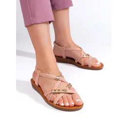 Přidání recenze k Moderní dámské růžové sandály na plochém podpatku