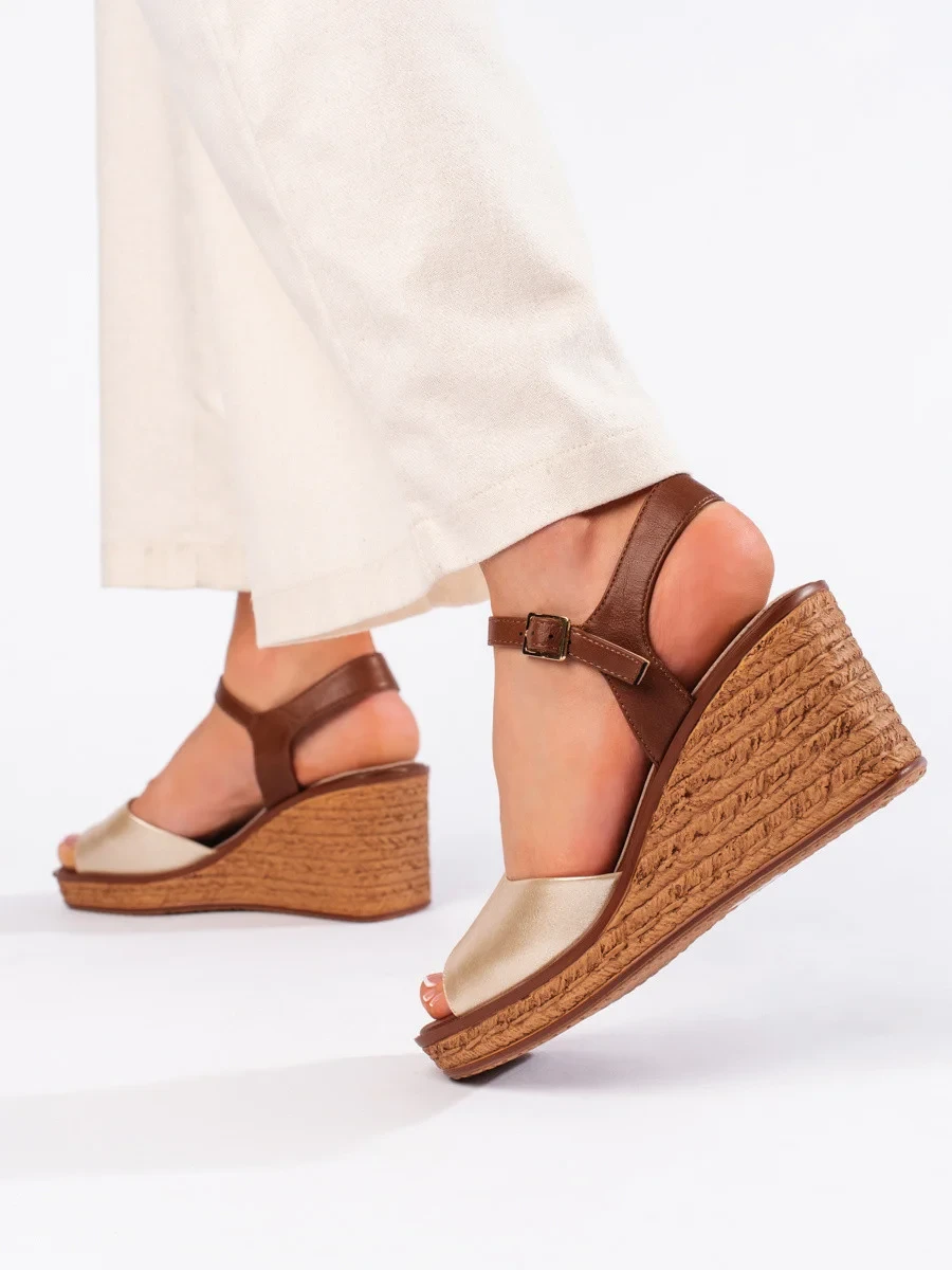 Přidání recenze k Moderní dámské sandály zlaté na klínku