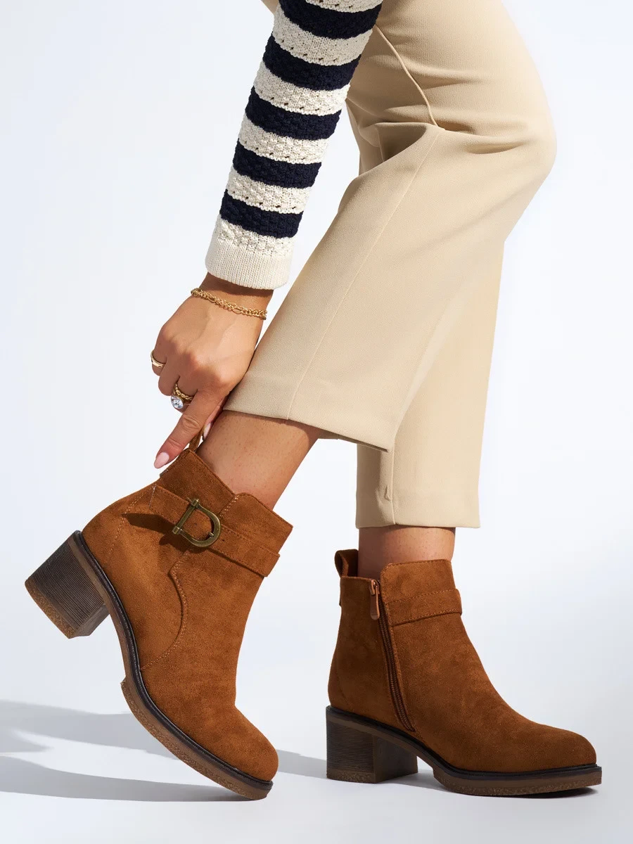 Moderní hnědé kotníčkové boty dámské na širokém podpatku