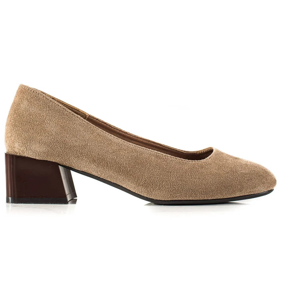Moderní hnědé lodičky dámské na širokém podpatku