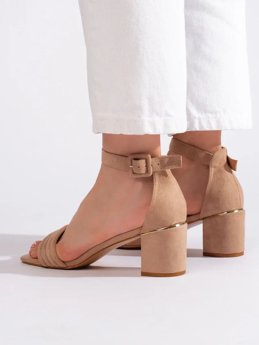 Přidání recenze k Moderní hnědé sandály dámské na širokém podpatku