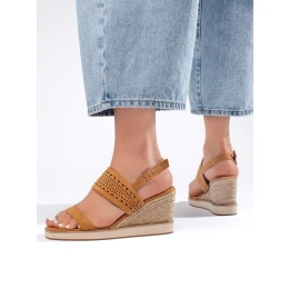 Moderní sandály dámské hnědé na klínku