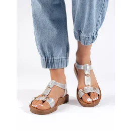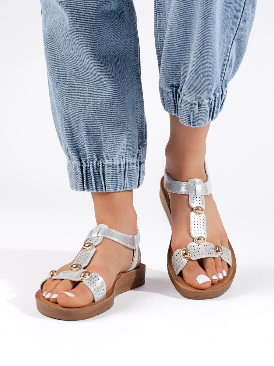Přidání recenze k Moderní sandály dámské stříbrné na plochém podpatku