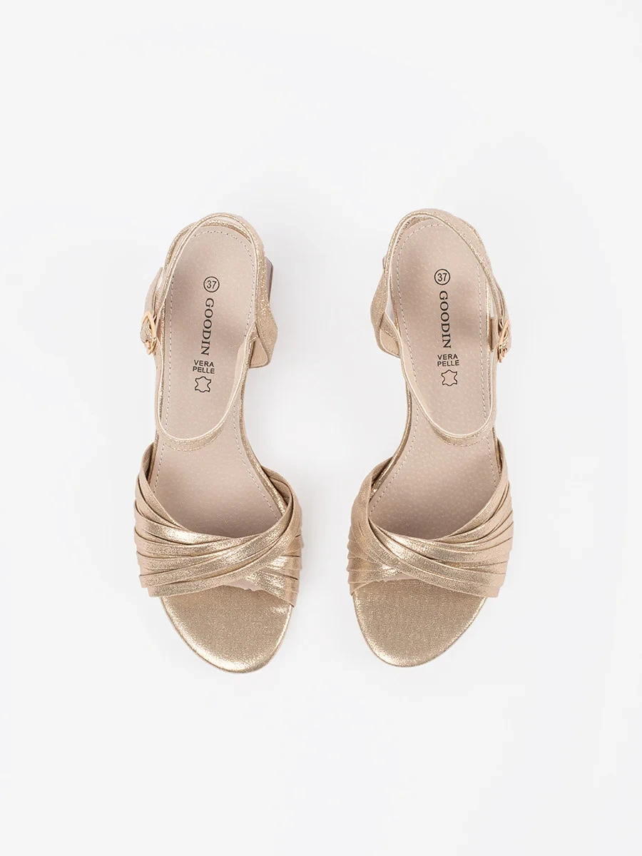 Přidání recenze k Moderní zlaté sandály dámské na širokém podpatku