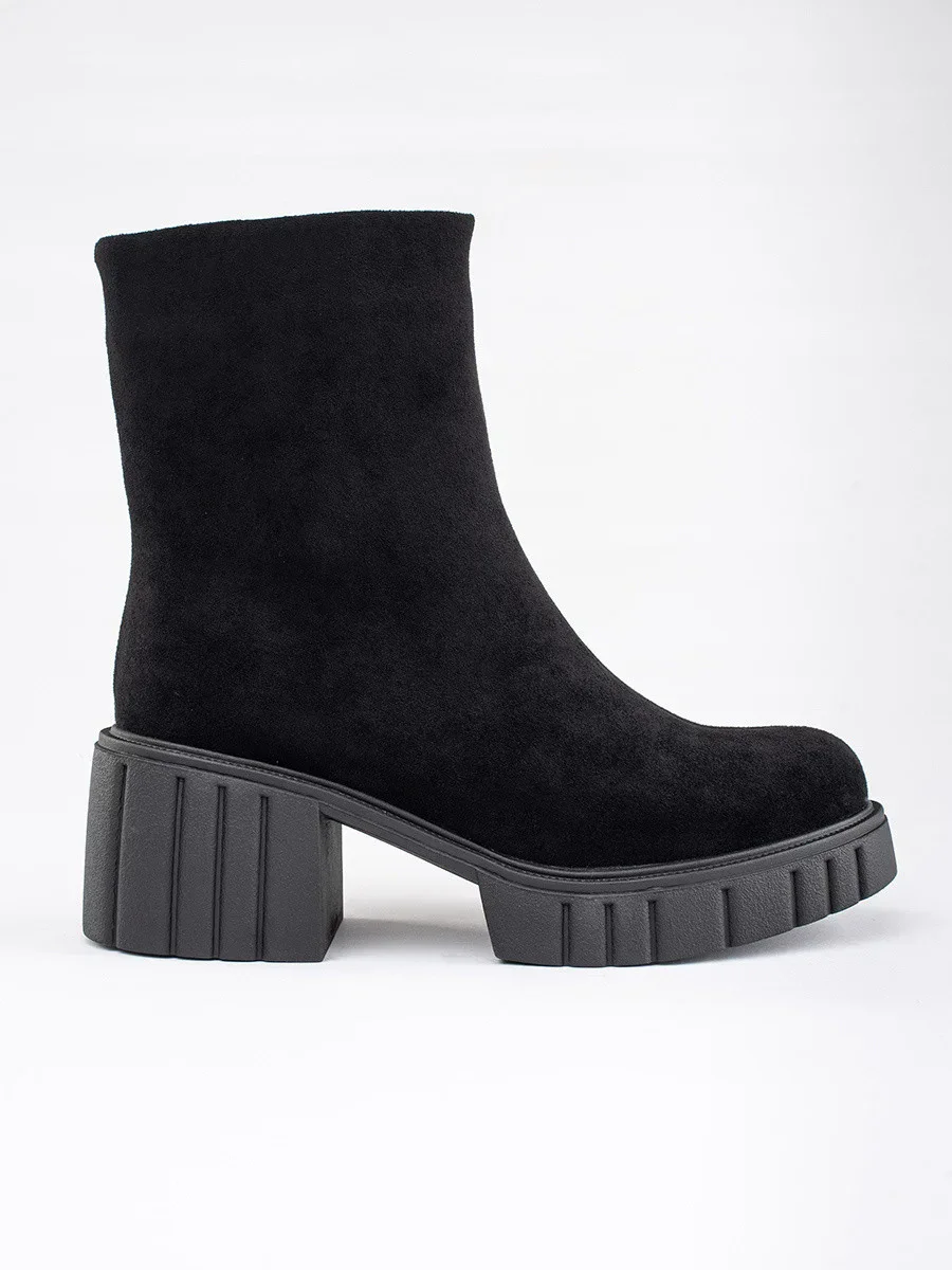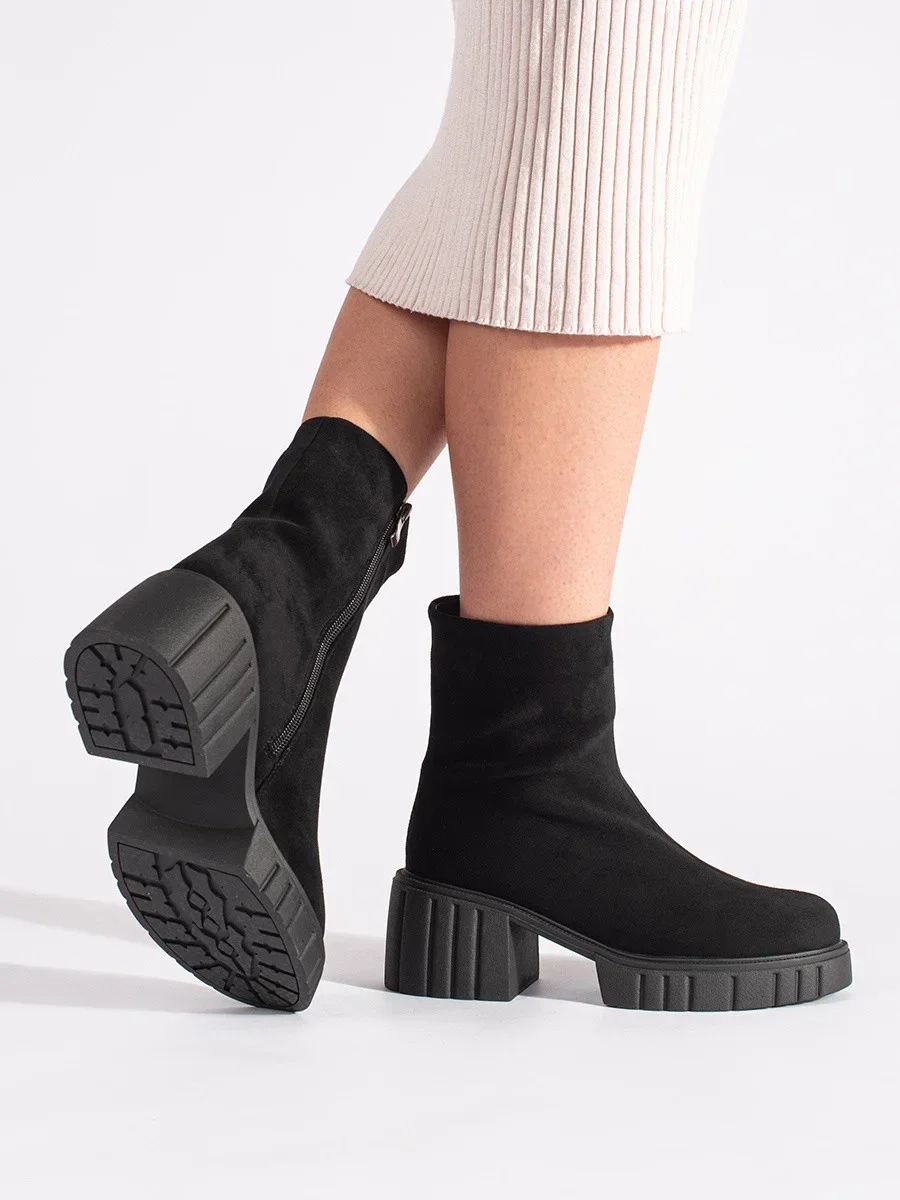 Módní černé dámské kotníčkové boty na širokém podpatku