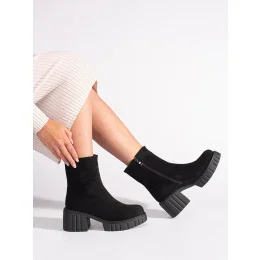 Přidání recenze k Módní černé dámské kotníčkové boty na širokém podpatku