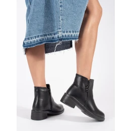Módní černé kotníčkové boty dámské na širokém podpatku