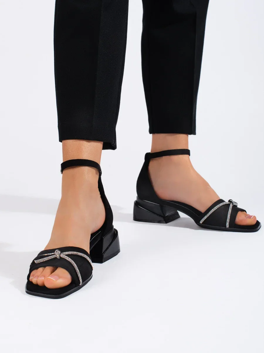 Přidání recenze k Módní černé sandály dámské na širokém podpatku