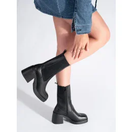 Módní dámské černé kotníčkové boty na širokém podpatku